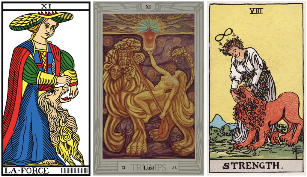 After The Fool learns discipline and direction from The Chariot, he now discovers that not every obstacle needs force. Strength teaches him how to tame his inner lion — his fears, insecurities, impulses, and emotional storms.